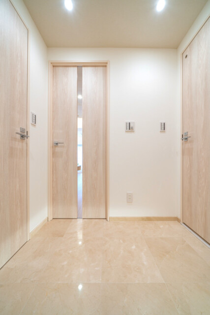 玄関からホールにかけては大理石が貼られ高級感のある雰囲気。入ってすぐが細長い廊下でなく、幅のある広いスペースになっていると解放感があってテンション上がりますね♬