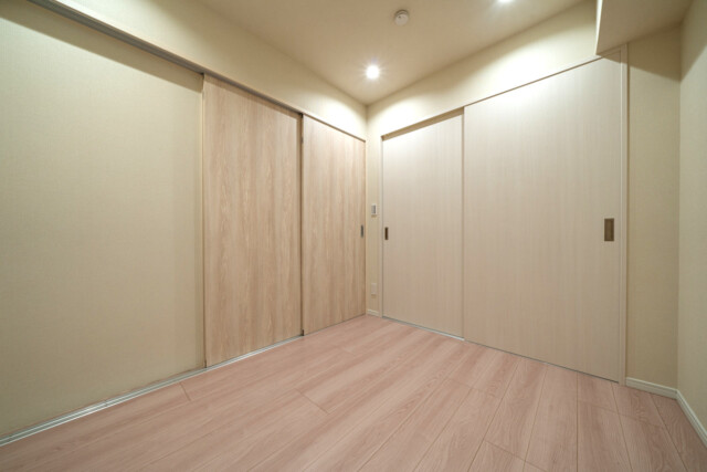 窓の無いお部屋なので暗く静かで寝室に最適!デッドスペースを作らない引き戸を使っているので、ベッドなどの家具を置く際も目いっぱいお部屋のスペースを使えます。