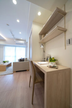隣にカウンターがあり、デスクとしてもお使い頂けます。