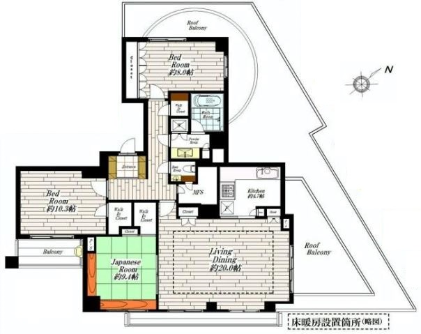 南・東・北の三方角部屋の3LDK+3WIC 119.47㎡ ルーフバルコニー31.54㎡