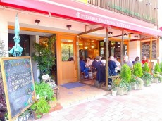 春には通り沿いの桜が楽しめるようテラス席もあります。
