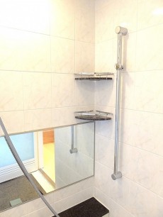シャワーホルダーは2箇所に設置してあり、高さ調節も可能です。