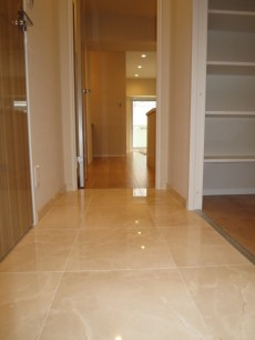玄関ドアを開けると、天然大理石貼りの廊下が伸びており、一気に優雅な雰囲気に