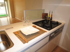 います。すっきりしたデザインの中にもコンロ前にはさりげなく目隠し・油はね防止