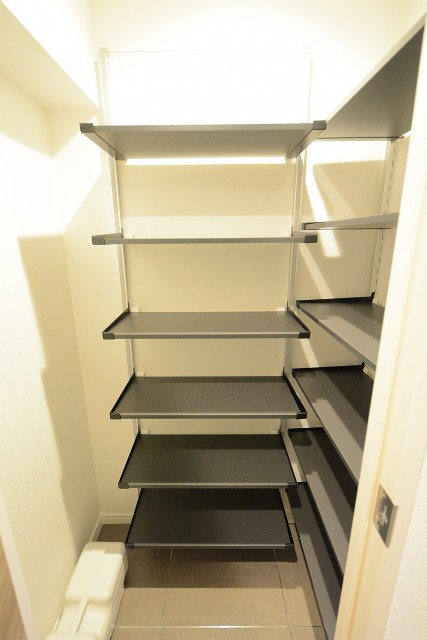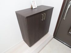 入って左手に大容量のシューズボックス、そのとなりに物入れが設置されており、