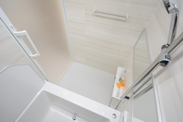 シャワーにはスライドバーが付いているので、お好みの位置でシャワーヘッドを