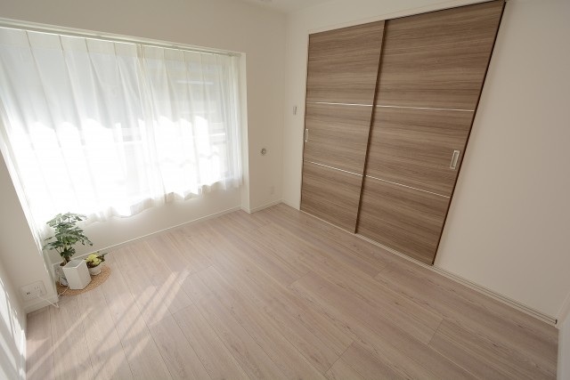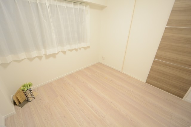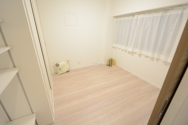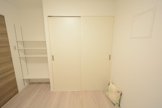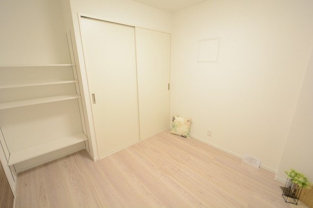 玄関側の洋室。クローゼットの横に棚が造作されていますので、お部屋をすっきり