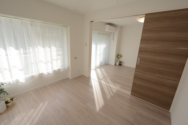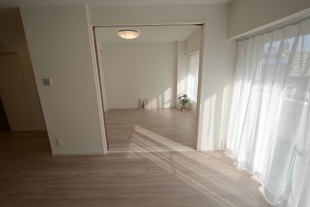 洋室はリビングダイニングに隣接しており、2部屋は2枚の可動扉で仕切ることができるようになっています。可動扉をガラガラ~と横にスライドさせると。。。