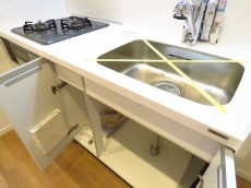 キッチンの水栓は浄水機能付き、コンロは2口ガスコンロです。