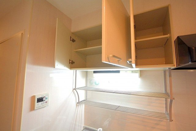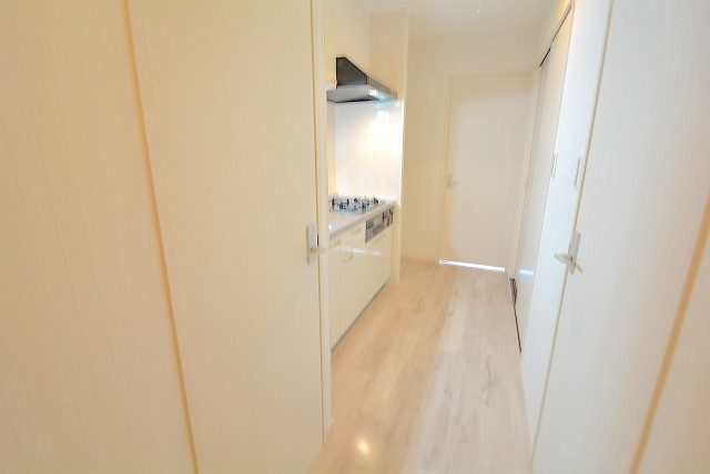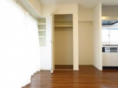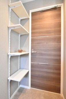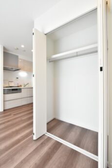 ダイニングキッチン内にはクローゼットと棚付きの収納スペースが設けられています。