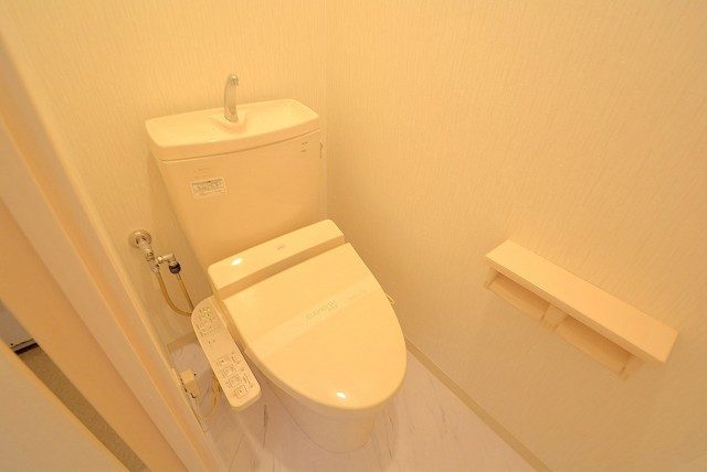ウォシュレットと小物の収納に便利な吊戸棚がついています。
