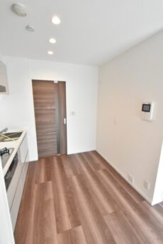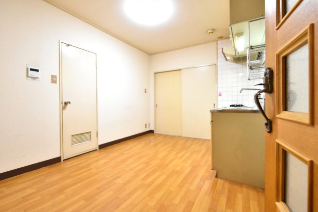 2人掛けくらいのダイニングテーブルとキッチン家電や収納家具を置いてちょうどよい広さでしょうか。ダイニングキッチン内に窓はありませんが、エアコンが設置されているので引っ越したその日から快適に過ごせそうです。