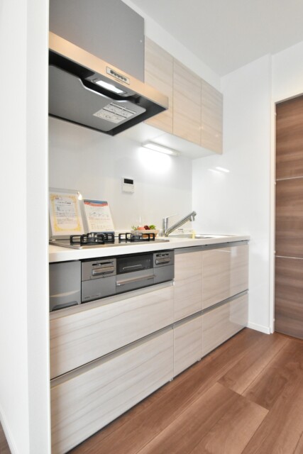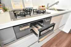 キッチンは浄水機能付き水栓、3口ガスコンロとスペック◎。