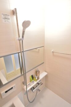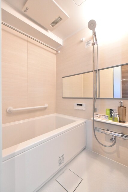 バスルームは追い焚き、浴室換気乾燥機能付きと設備充実。