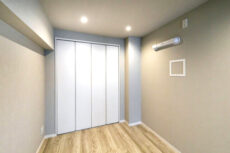 窓はありませんが、ガラス戸で仕切られていることによってLDKからの光を取り込めるお部屋です。扉を開ければLDKとつなげてワンルーム使いも可能ですよ。クローゼットも設置されているので収納家具を置く必要もありません。