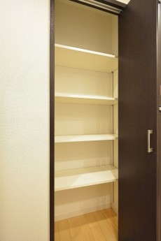 スペースも広く、高さ調節可能な可動棚で背の高いものも収納できます。