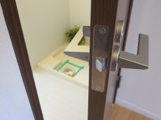 玄関ドアは安心のダブルロック。複数の鍵を付けるのには開けづらくすると共に、狙われづらくする効果もあるそうですよ。