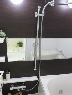浴室はモノトーンでまとめられたモダンな雰囲気。給湯器は追い焚き機能付きなので、ご家族でお風呂の時間が合わなくてもいつでも温かいお風呂へ入れますよ。昔は「冷めちゃうから早く入っちゃいなさい!」なんてよく怒られたものです(笑)浴室換気乾燥機付き。