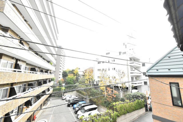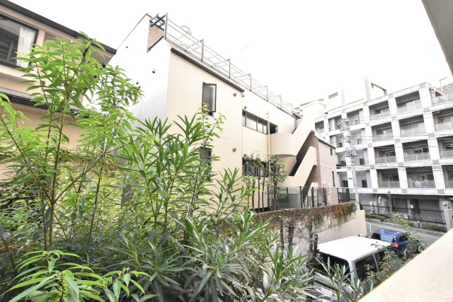 正面にはマンションが建っていますが、ちょうど駐車場になっているのでまずまずの眺めになっています。緑のある風景って季節感があっていいですよね。大通りからは一本入っているので意外に静かですよ。
