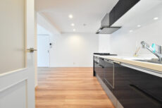 こちらは約3.9帖のキッチン。南向きの窓のあるお部屋です。壁付けタイプで調理台後ろも広々。あまりお料理をしない方も、これを機会に料理に目覚めるかもしれませんね(^^)