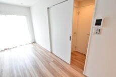 こちらは約5帖の洋室。LDKと同じ南向きバルコニーに面したお部屋です。シンプルな色使いで家具も合わせやすそうですね。