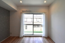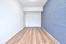 やはり南向きのバルコニーに面したお部屋です。こちらのアクセントはかなりおとなしめ。シンプルなのでカーテンや家具で好みのテイストに変えていくのもよさそうです。