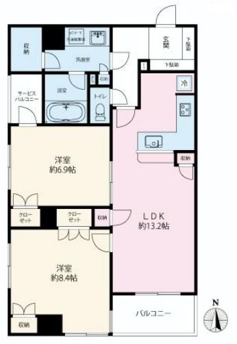 南向き角部屋の2LDK 68.17㎡