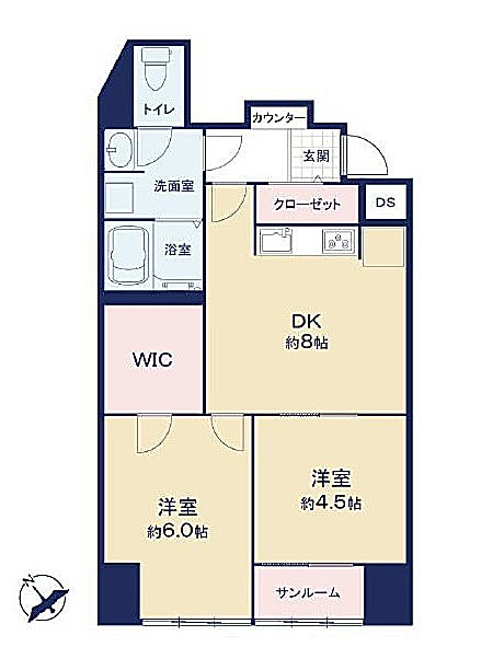 今回ご紹介するお部屋は3階、専有面積48.18㎡の2DK。お一人暮らしやDINKSの方にお勧めのお部屋です。バルコニーの代わりにサンルームがあるんですね!どんな感じか楽しみです♬ では、早速行ってみましょう。