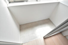 玄関照明は人感センサー付き。自動で照明を点けてくれるので、真っ暗な中手探りでスイッチを探す必要もありません。荷物が多くて両手が塞がっていても大丈夫です。玄関脇にはクローゼットを兼ねたシューズボックス!靴がたくさん収納できるのはもちろん、アウターなどをかけておくこともできます。花粉やウィルスなどの余計なものを室内に持ち込まなくて済みますよ。