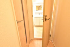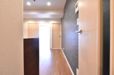 入るとすぐ右側はニッチカウンターになっています。このスペースがあるおかげでおかげでだいぶゆったりと感じますね。カウンターにはいろいろ飾ってインテリアを楽しむことも可能。内装がシンプルなのでお好きな雰囲気にアレンジできそうです。