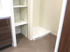 洗面室には洗面台の他に、洗濯機スペース、浴室、トイレがまとまっていて、脱衣所も兼ねています。