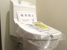ウォシュレット付きで上部には吊棚が設置されています。トイレットペーパーのストックなどはこちらの吊棚へ収納いただけます。