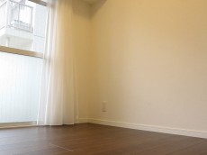 洋室の中では一番大きなお部屋です。柱の出っ張りなどがなく、約2.2帖のウォークインクローゼットのおかげで収納家具の必要もないこともあって、数字よりもさらに広く使えると思いますよ。窓がないのでとても静か。眠る時にうるさいのが苦手な方でも安心ですね。
