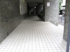 エントランスはガラス扉で、白いタイルが中まで続いています。