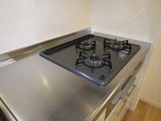 ダイニングの一角にシステムキッチン。コンロは3口ありますので、主菜と副菜を