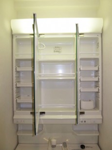 ストレスが軽減されます。三面鏡の裏側はまるまるっとキャビネット収納になって