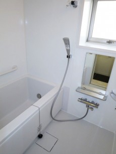 こちらもホワイトカラーのバスルーム。窓もあり明るいです。日中なら自然光のもと、