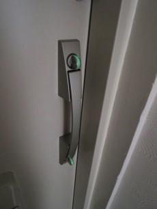 玄関ドアのキー部分は、暗いところで発光する素材です。おお、気が利いてますね。