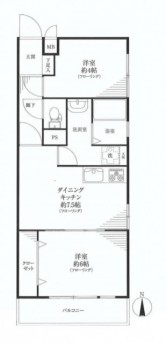ここで間取りのご紹介。47.92㎡、2LDK。東南角部屋ですので日当たり期待でき