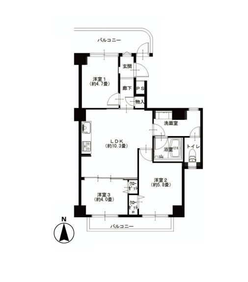それでは、間取りのご紹介です。3LDK、55.07㎡。5階。ファミリーにおススメの間取りです。