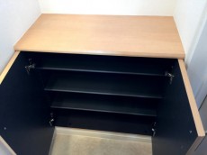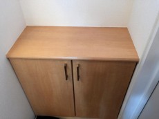 玄関右手には、ロータイプのシューズボックスです。シューズボックスの上はカウンターになっていますのでインテリアで華やかに飾りたいですね (●´∀`)