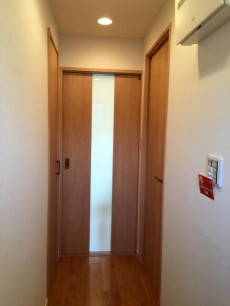 棚等は設置されていませんので、後から棚を設置したり、突っ張り棒で収納を作ったりと工夫したいですね(*´∀`*)