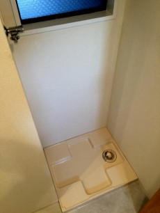 洗面台の奥は、洗濯機置場☆上部に窓も付いていて光を取り込んでいます♫