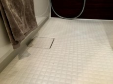 ミラー横にもシャンプーなどのボトルもキレイに並べて置ける棚があり、清潔感のある空間を保つことができます♪♪モザイクパターンの床は、水はけが良く、すばやく乾燥します。