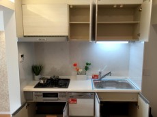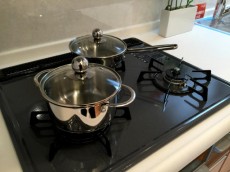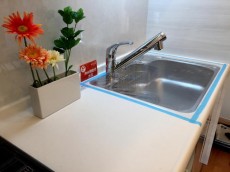コンロは3つ口、大きめシンク&人造大理石トップと使い勝手◎