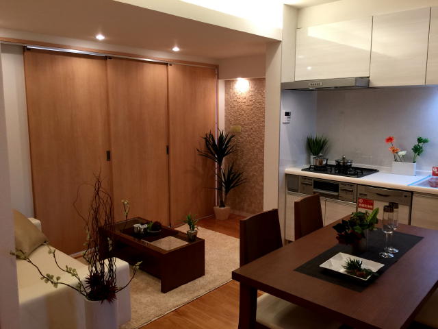 こちらのお部屋とダイニングキッチンは、スライド式のドアで隔てられていますので、扉をあけて一つのお部屋として使うこともできます♪♪ダイニングキッチンのお部屋に窓が無いので、普段はこのドアを開けて使えば南向きの窓からダイニングキッチンまで明るくなります (●´∀`)