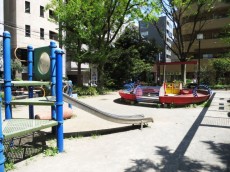 公園があり、カラフルな遊具も複数ありましたがさすが新宿、子どもはいなくて