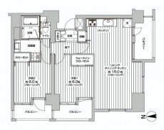 ここで間取りのご紹介。62.77㎡、2LDKにウォークインクローゼットがついています。