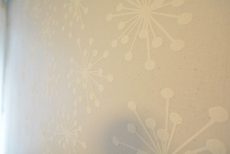 こちらのお部屋の壁紙はタンポポの種の様な可愛い柄です。