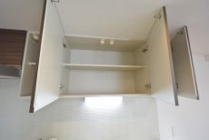 上部には棚板可動式の収納がありますので、トイレットペーパーのストックや